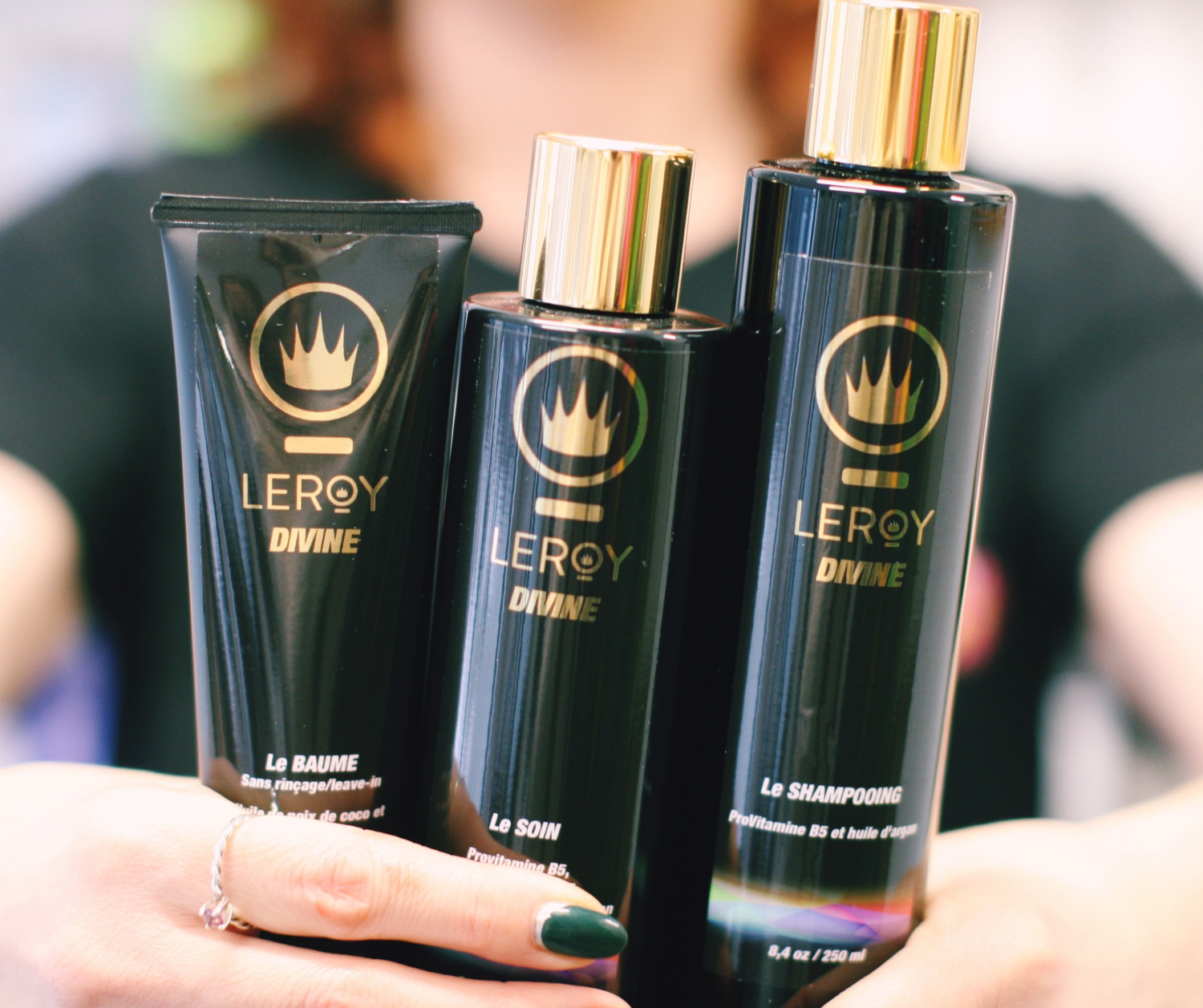Tu y retrouveras des produits personnalisés, dont mon Huile DIVINE et mon démêlant, créé en collaboration avec la compagnie québécoise Leroy.